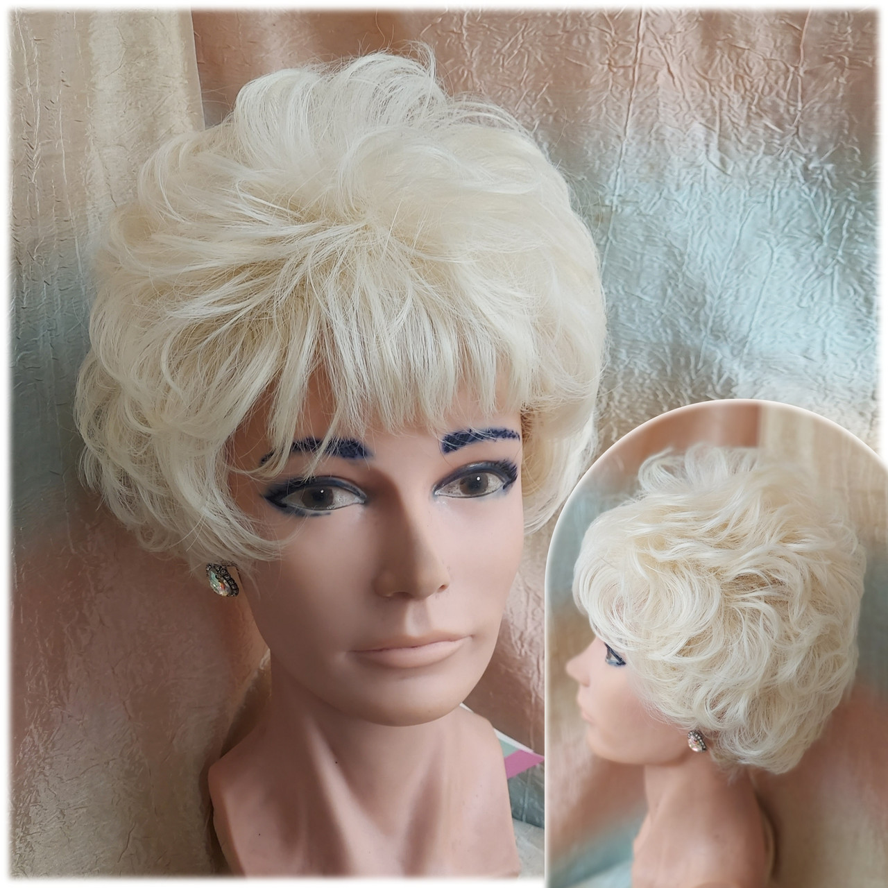 Перука пишна, об'ємна, підкручена по всій голові. Класична модель. Спереду укладається в різних напрямках. Зроблений з ✅ТЕРМОВОЛОКНА✅ виробництва Японії. Розмір голові 54-59 см. Фото зроблені з реального товару.