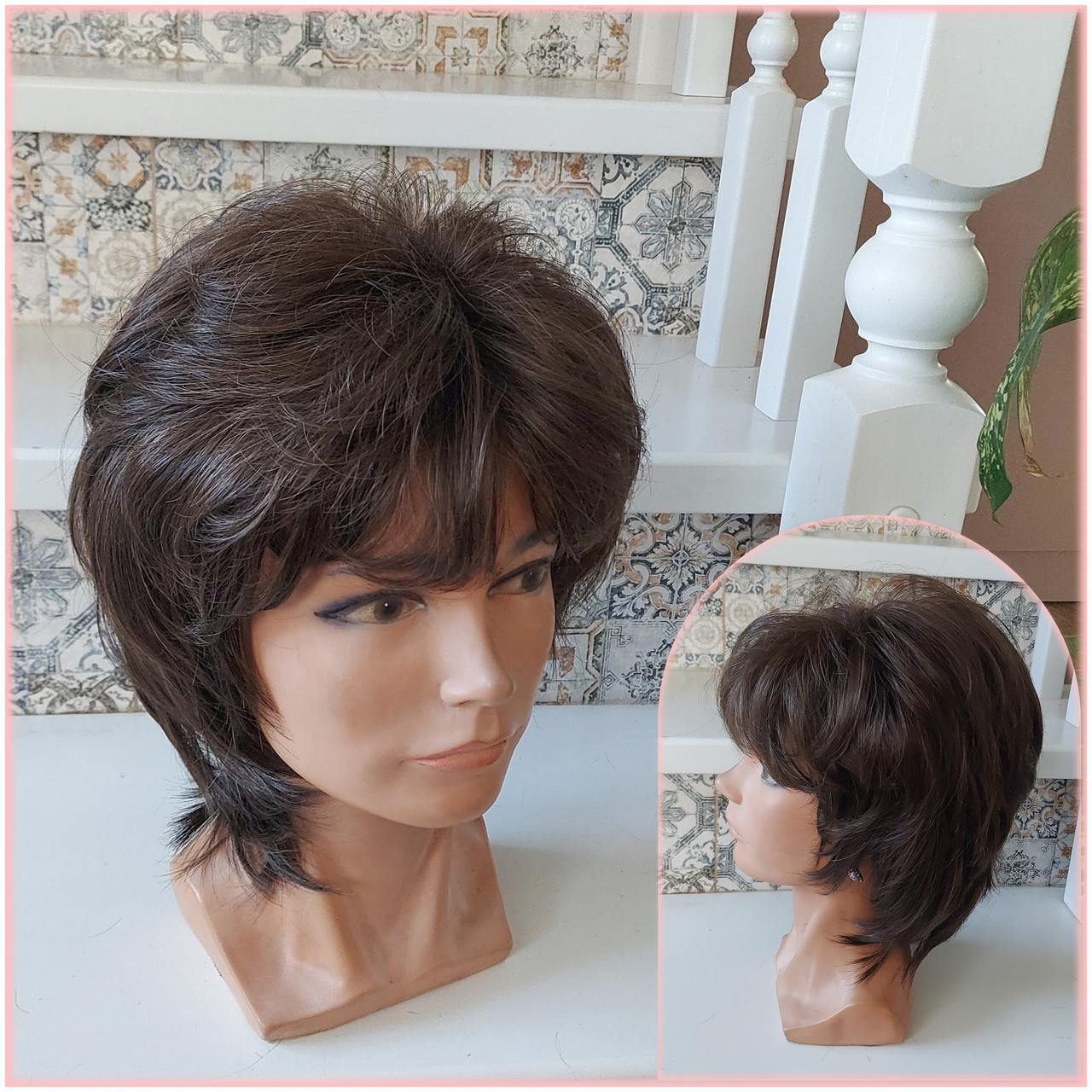 Зроблений з високоякісного ✅ТЕРМОВОЛОКНА✅ , виробництва Японії. Фото зроблені з реального товару. Розмір голови 54-58см.. Можна і укладати феном, термобигудями або праскою до 180*С. Після прання зберігає свою форму .