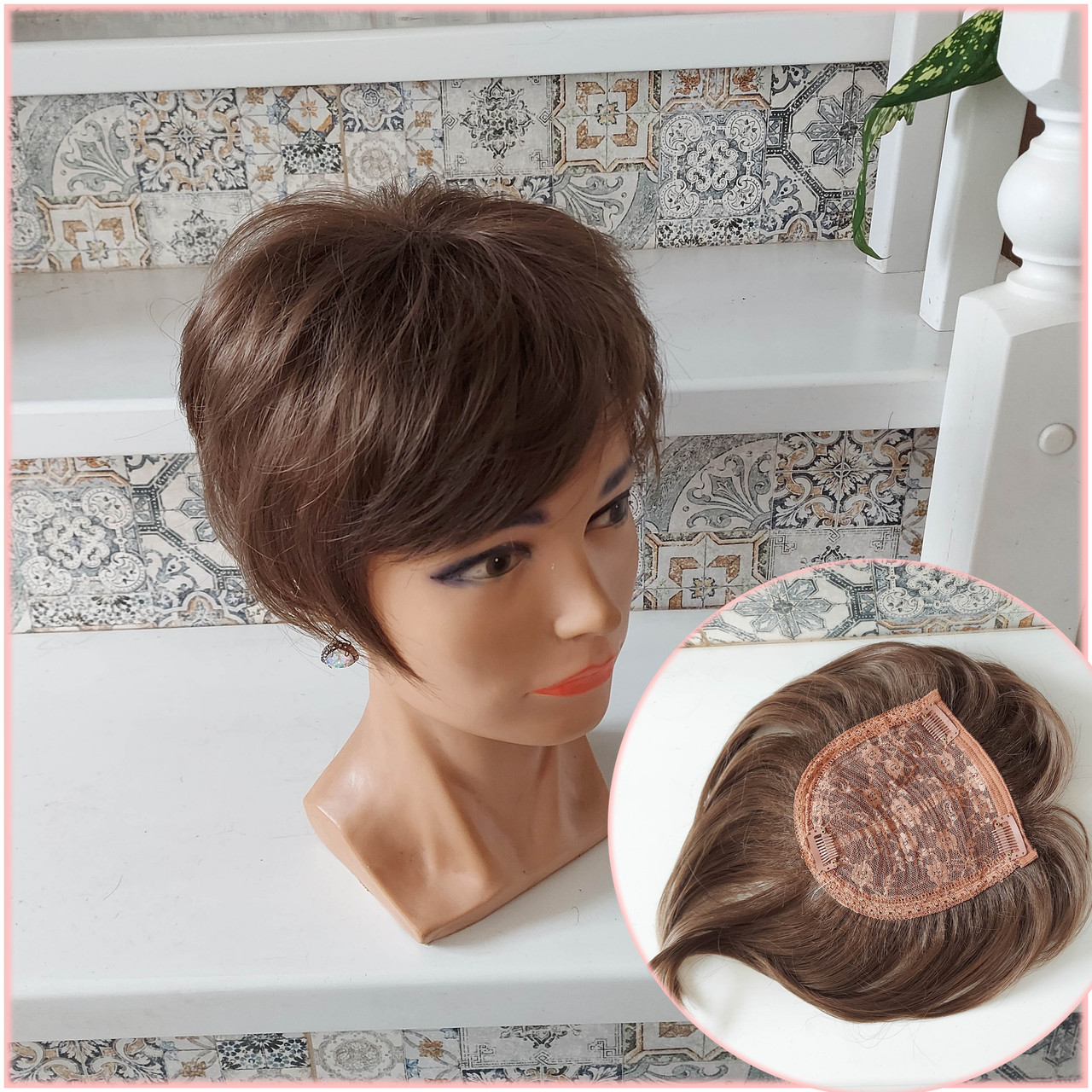 Напівперука, накладка для передньої частини голови (маківки). Найдешевша альтернатива системі нарощування волосся чи монопарикам. Фото зроблені з реального товару. Розмір основи 14×16 см.