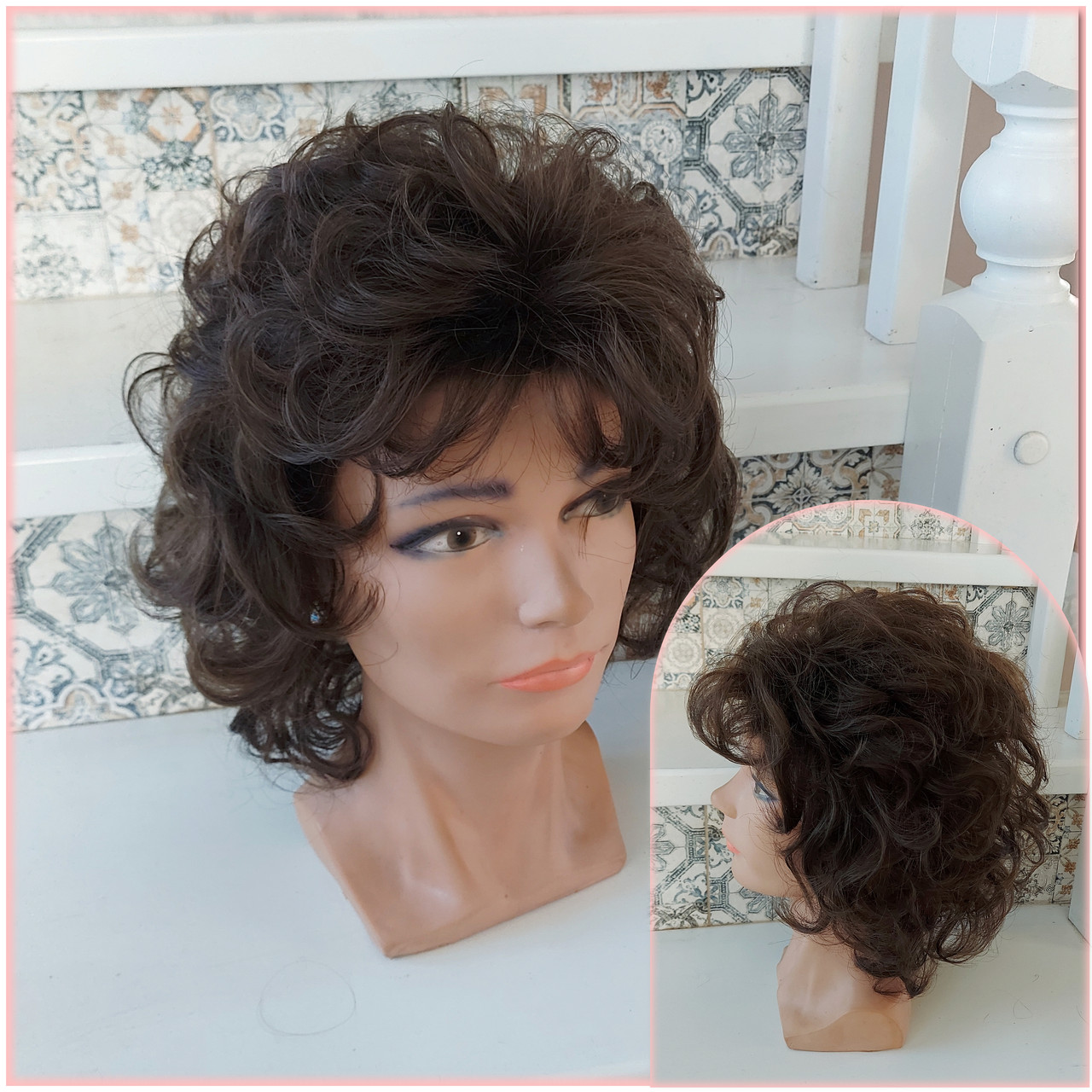 Перука каскад кучерява з термоволокна темно-русявий 846 - 8